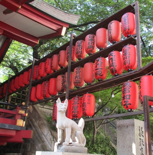 月見櫓の朱塗りの回縁 red-lacquered veranda around the Tsukimi-yagura turret